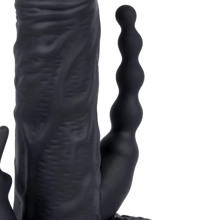 β’ Dual penetrating dildo features a beaded anal vibrator, clitoral stimulator and thrusting action for an intensely erotic experienceΒ