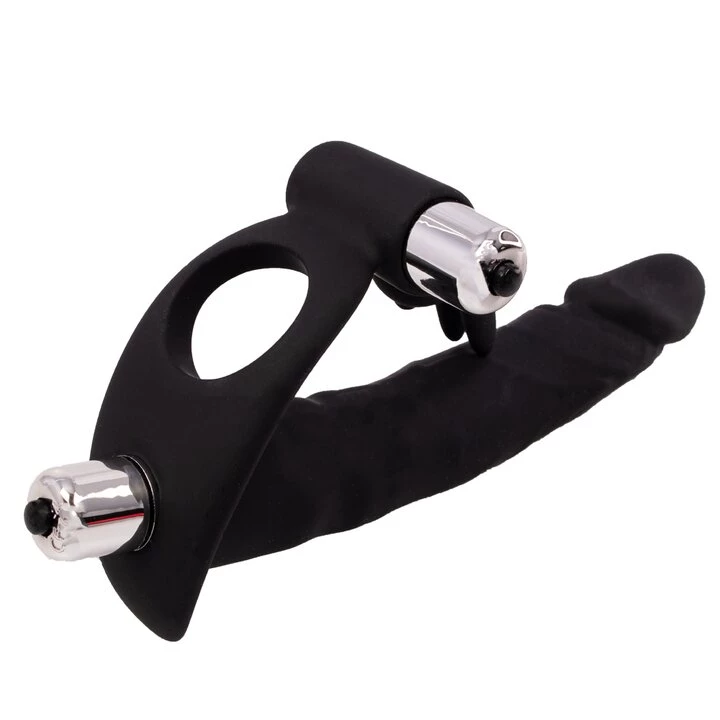 Perfect for bum lovers, tease your lover with triple the pleasure with the Black Dual Penetration Vibrating Anal Strap-On for all-round stimulation.