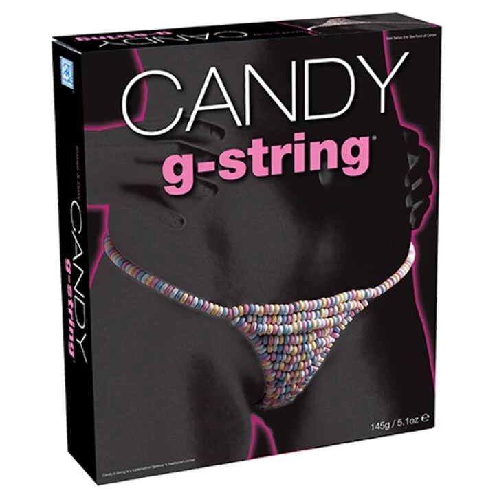 The candy necklace we all know from childhood gets a super-sexy (and very adult) upgrade. Slip into this fun elastic Candy G-String and lie back as your partner devours the 330 or so candy pieces protecting your modesty. Team with the Candy Bra or Candy Nipple Tassels (sold separately). Yum!