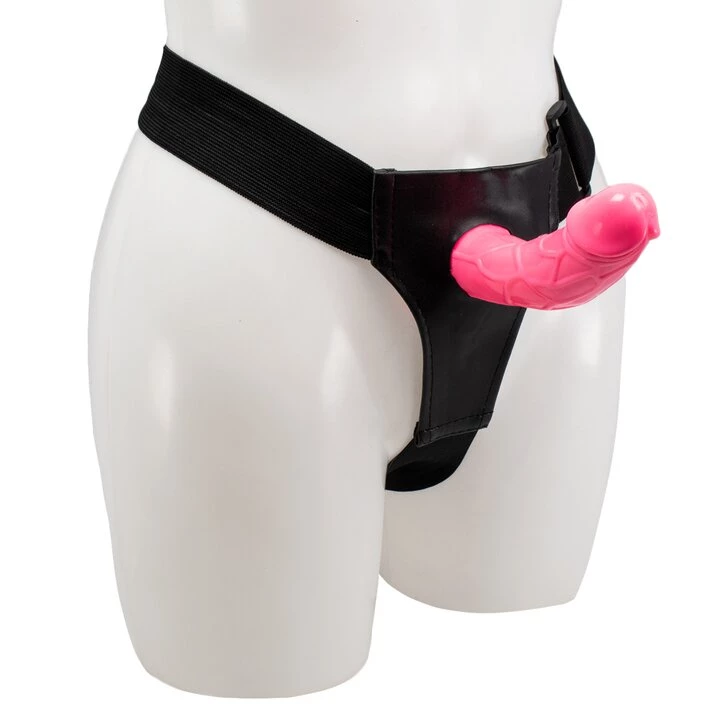 This true-to-life strap-on dildo stars a smooth 6-inches of veiny textures for their intimate stimulation. With an adjustable flared base, the tip is orgasmically contoured to activate your partner’s pleasure centre. Just turn this versatile dildo upwards in the front of the faux-leather harness to hit her G-spot or downward for P-spot pegging pleasure!