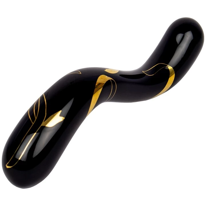 Polish up your precious moments with the luxurious Gold Rush Black G-Spot Dildo from Glacier Glass for precision pleasure.
