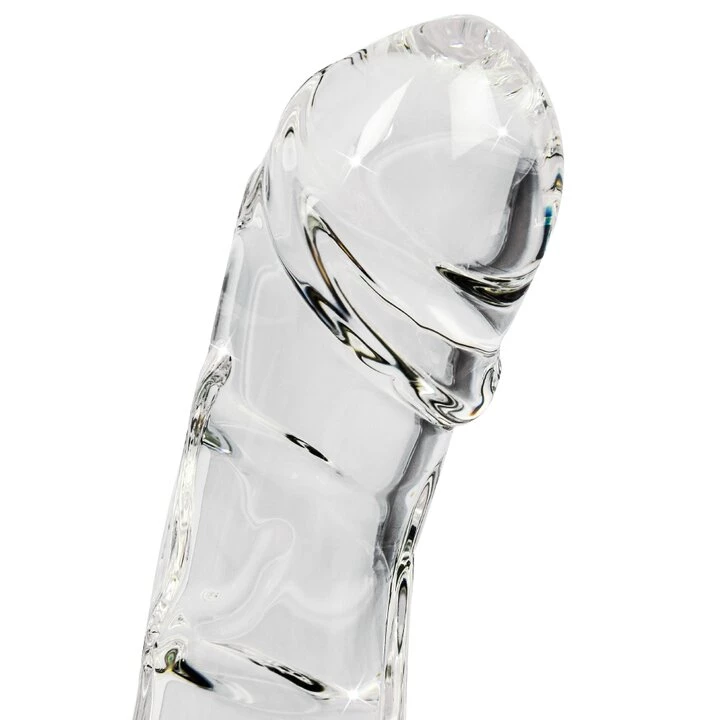 • Luxurious realistic shaped glass dildo with bulbous veins on shaft.
